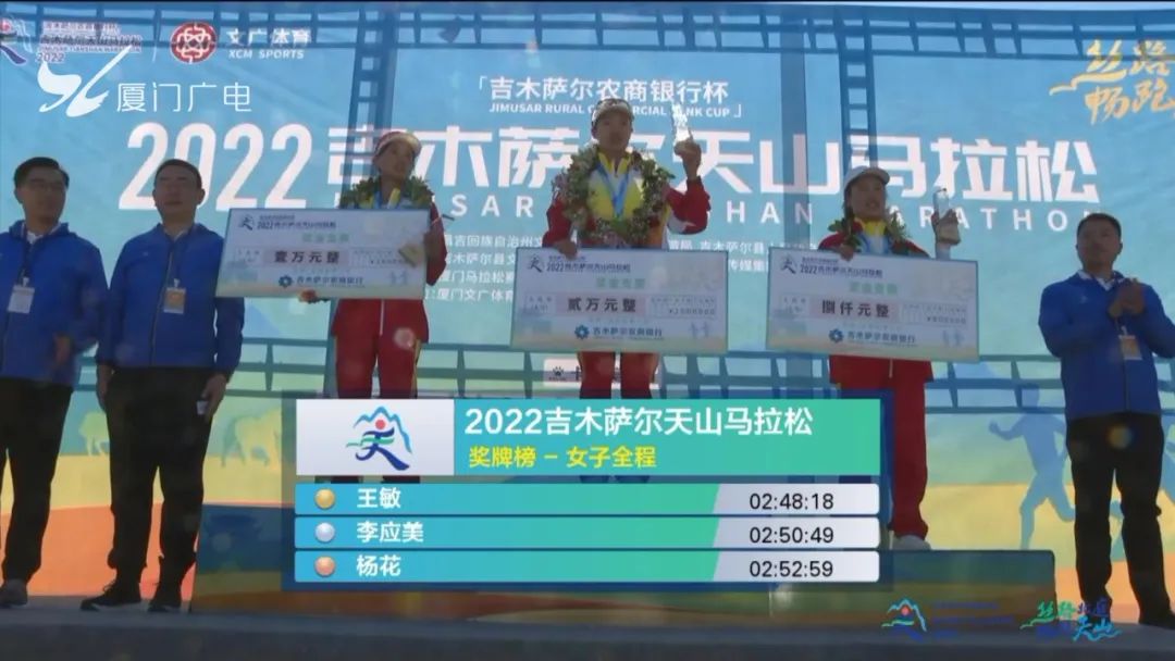 王敏获得马拉松项目女子组冠军,成绩为2小时48分18秒;李应美获得亚军,成绩为02:50:49;杨花获得季军,成绩为02:52:59。